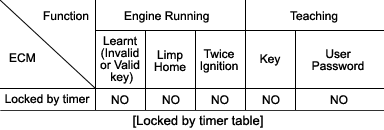 Fig. 2 shows possibility of Engine start, Teaching or changing of user password according to ECM status.
