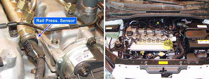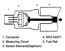 RPS(Rail Pressure Sensor), consists of piezzo electric element, measures rail pressure inside of common rail..