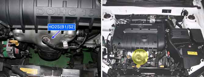 In order to control the emission of the CO, HC and NOx components of the exhaust gas, a heated oxygen sensor (HO2S), mounted on the front side and rear side of the catalytic converter, detects the oxygen content in the exhaust gas. The front HO2S signal is used to control air/fuel ratio (closed loop fuel control) and the rear HO2S signal is used to monitor front HO2S and catalyst for proper operation. The HO2S requires a minimum temperature to operate properly and provide a closed loop fuel control system. So the HO2S contains a heater element to reduce warm-up time and ensure proper performance during all driving conditions, which allows for closed loop fuel control or catalyst monitoring immediately upon engine start-up. The ECM controls this heater element by duty cycle. The main relay supplies voltage to the heater and the ECMprovides a ground circuit for activating the heater.