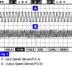 The value of the input shaft speed should be equal to the value of the output shaft speed, when multiplied by the 4th gear ratio, while the transaxle is engaged in the 4th gear. For example, if the input speed is 1000 rpm and the 4th gear ratio is 0.685, then the output speed is 685 rpm.