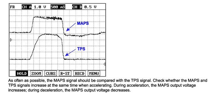 MAPS transfers analog output signal which is proportional to the change of intake manifold pressure, then, with this signal and RPM, PCM calculates the amount of intake air flow.
