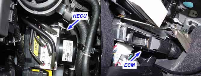 CAN communication is applied just for FTCSs( Full Traction Control Systems) installed in the vehicle for sending requirement data, such as Torque reduction, the number of fuel cut cylinders, and TCS control requests, to the Engine ECM & TCU. The Engine ECM performs fuel cut functions according to requests from the ABS ECU and retards ignition timing by torque reduction requests. The TCU maintains current gear positions during TCS control time, by not increasing power which causes a Kickdown shift.