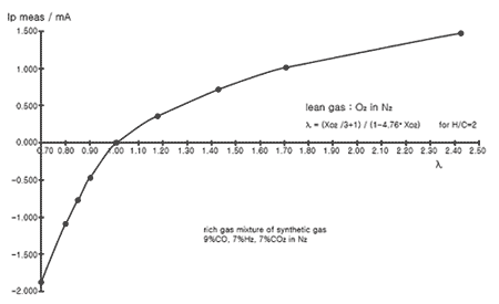 Rich air-fuel mixture(0.9<1.0) : ECM takes away pumping current from O2 sensor (-pumping current) and deactivates it for Lambda sensor to have the characteristic at ?=1.0 (0.0 pumping current). With the value of pumping current taken away from Lambda sensor, ECM detects O2 density of exhaust gas.