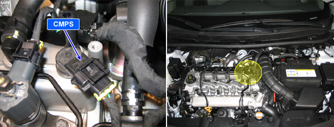Cam Shaft Position Sensor(CMPS) is hall sensor type. Sensing the teeth attatch at the end of exhaust cam shaft, CMPS detects rotation of Cam shaft (1 signal per 1 lotation).