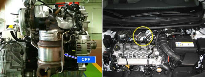 Comparing with gasoline engine, one of the worst point of diesel engine is that a lot of particle material(PM) are generated after combustion process. In order to decrease the amount of PM, CPF is equipped in EURO-4 diesel engine. CPF is the device which gathers PM with installed filter then burns it up as raising the tempt. inside of CPF above the ignition point of PM. The process which burns up PM is called "CPF regeneration".