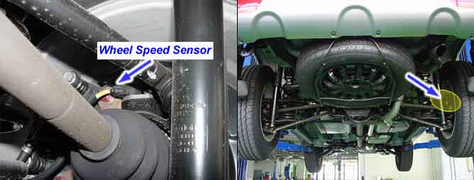 The wheel speed sensor is the essential component the ABS ECU uses to calculate vehicle speed and to determine whether wheel lock occurs. For example, rear wheel speed signal is used as a referecnce value, for vehicle speed, in front wheel drive vehicles, and if a difference between front and rear wheel speed occurs, then ABS control is performed. The wheel speed sensor generates sinewave signals, based on magnetic field made by a permanent magnet in the speed sensor, when the tone wheel rotates. The frequency and AC voltage changes in proportion to the wheel speed, and the HECU determines the speed by calculating the frequeny of the signal.