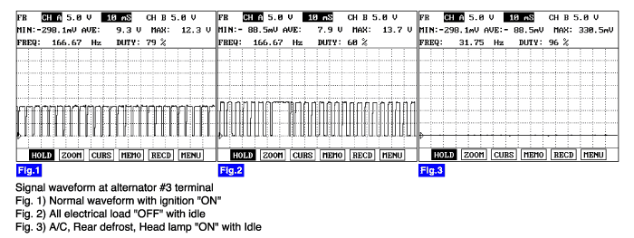 Alternator output and power demand of all electrical loads and systems must be matched to each other as ideally as possible so that the entire system is reliable and trouble-free in operation. The ECM monitors alternator output deviation from the signal of the FR terminal of the alternator when the engine is running