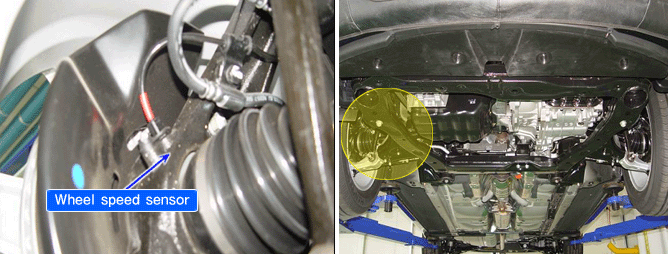 The wheel speed sensor is the essential component the ABS ECU uses to calculate vehicle speed and to determine whether wheel lock occurs. For example, rear wheel speed signal is used as a referecnce value, for vehicle speed, in front wheel drive vehicles, and if a difference between front and rear wheel speed occurs, then ABS control is performed. Wheel speed sensor is active hall-sensor type and good at temperature and noise chariteristic. Digital wave is produced as tone wheel rotate according as hall sensor principle. Frequency of duty wave is changed in proportion to rotation of tone wheel and HECU calculate vehicle speed by this frequency.