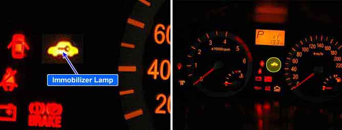 Driver can check if immobilizer system is verified as monitoring immobilizer lamp. Until engine turns on after successful verification, the lamp is turning "ON".