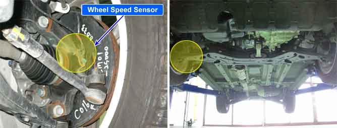 | Open or short of Wheel speed sensor circuit Faulty Wheel speed sensor