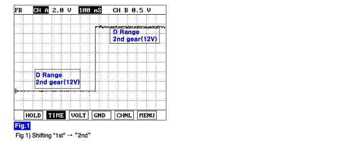 CASE2 | ? PG-B > 900rpm ? Oil temp. > 60 ?(140?) ? Inhibitor swich D,2,L ? Present gear ratio : 2nd or 4th gear ? Battery voltage > 9V ? Engine speed > 400rpm |