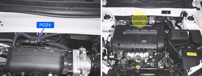 The evaporative emission control system prevents hydrocarbon (HC) vapors from the fuel tank from escaping into the atmosphere where they could form photochemical smog. Gasoline vapors are collected in the charcoal canister. The ECM controls the Purge Control Solenoid Valve (PCSV) to purge any collected vapors from the canister back to the engine for combustion. This valve is actuated by the purge control signal from the ECM and controls fuel vapor from the canister to the intake manifold.