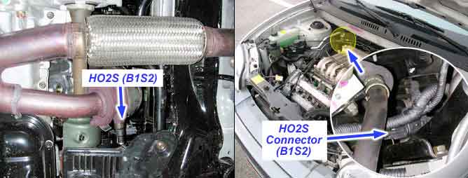 The rear heated oxygen sensor is mounted on the rear side of the Catalytic Converter (warm-up catalytic converter) or in the rear exhaust pipe, which is able to detect catalyst efficiency. The rear heated oxygen sensor (HO2S) produces a voltage between 0V and 1V. This rear heated oxygen sensor is used to estimate the oxygen storage capability. If a catalyst has good conversion properties, the oxygen fluctuations are smoothed by the oxygen storage capacity of the catalyst. If the conversion provided by the catalyst is low due to aging, poisoning or misfiring, then the oxygen fluctuations are similar to signals from the front oxygen sensor.