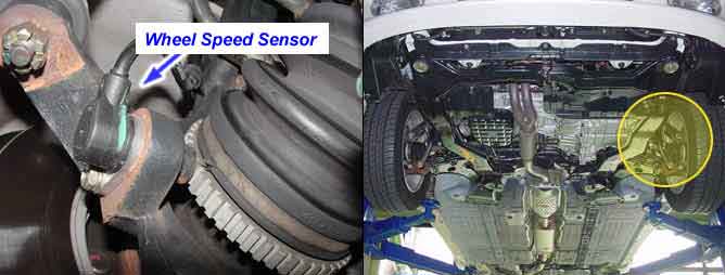 The wheel speed sensor is the essential component to the ABS ECU calculating vehicle speed and determining whether wheel lock occurs. For example, rear wheel speed signal is used as a referecnce value of vehicle speed, for front wheel drive vehicles, and if difference between front and rear wheel speed occurs, then ABS control is performed. The wheel speed sensor generates sinewave signals, based on magnetic field made by a permanent magnet in the speed sensor, when the tone wheel rotates. The frequency and AC voltage changes in proportion to the wheel speed, and the HECU determines the speed by calculating the frequeny of the signal.