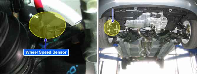 The wheel speed sensor is the essential component the ABS ECU uses to calculate vehicle speed and to determine whether wheel lock occurs.