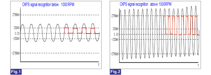 1) The output voltage of CKPS signal varies according to rpm(the speed of tone wheel passing by sensor)