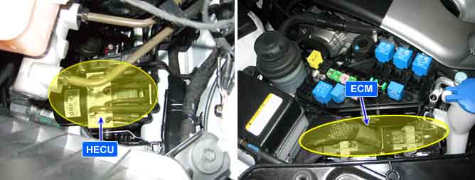 The HECU send requirement data, such as Torque reduction, the number of fuel cut cylinders, and ESP control requests, to the Engine PCM(ECM & TCM) through CAN bus line.