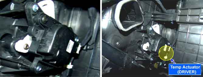 Temperature control actuator located at heater unit. It contains temp motor that changes temp door position and potentiometer that monitors position of temp door.Temperature control actuator regulates the temperature by the procedure as follows. Signal from control unit adjusts position of temp door by operating temp motor and then temperature will be regulated by the hot/cold air ratio decided by position of temp door. In operation, potentiometer delivers temp door position transformed into voltage value to A/C ECU.