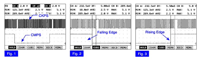 Fig.2,3) The CMPS falling(rising) edge is coincided with 3rd~5th tooth of the CKP from one longer signal(missing tooth)