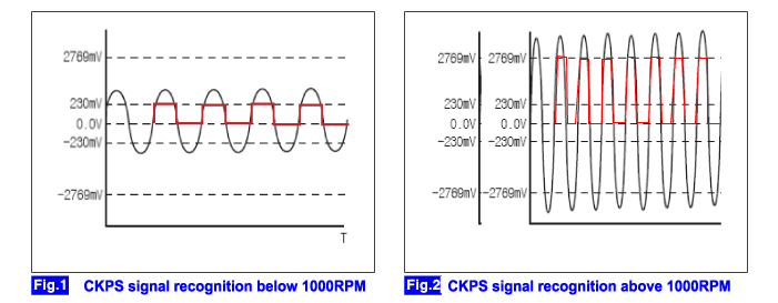 1) The output voltage of CKPS signal varies according to rpm(the speed of tone wheel passing by sensor) - low voltage is inducted for low speed and high voltage is inducted for high speed. )