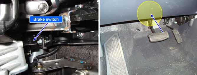 The brake light switch indicates brake pedal status to the ABS control unit. The switch is turned on when brake is depressed. The brake light switch is a normally-open contact which runs to battery voltage when active (brake depressed).