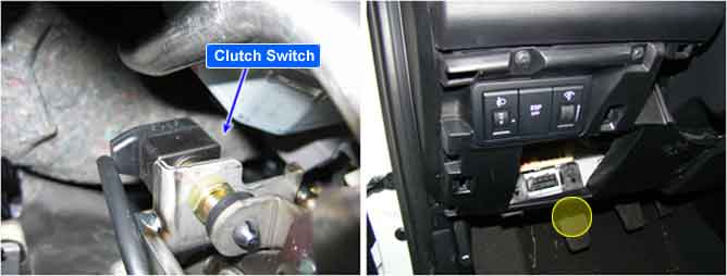 Clutch switch is connected to clutch pedal and transmits clutch operating state to ECM.