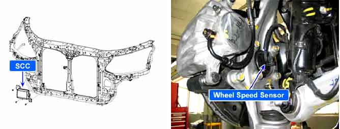 SCC monitors wheel speed sensor signal with every reception of the CAN message. SCC sets this code when there is no WSS signal or SCC detects improper WSS signal. System recovers to normal condition as soon as the signal is alright again.