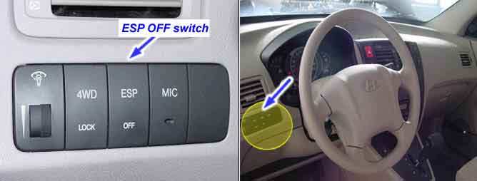Driver can inhibit the ESP control by ESP switch. When switch signal send into HECU, ESP warning lamp go ON and ESP control is stopped and if next switch signal is inputted again, ESP control is ready. This function is used for sporty driving or vehicle inspection.