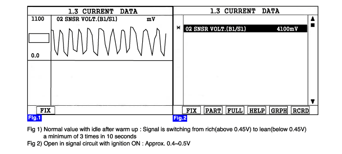 ? 0,49V > Down HO2S > 0,37V and sensor element resistance > 60 KO