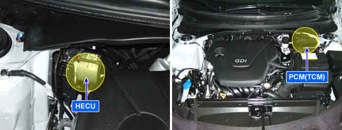 The HECU sends requirement data, such as torque reduction, the number of fuel cut cylinders, and the ESP control request, to the PCM(ECM & TCM) through CAN bus line. The PCM(ECM) performs the fuel cut function according to a request signal from the HECU and then retards an ignition timing. The PCM(TCM) maintains current gear position during the ESP control period in order not to increase power which causes a Kickdown shift.