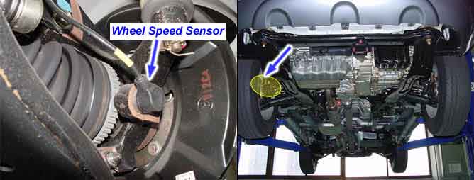 The wheel speed sensor is the essential component the ABS ECU uses to calculate vehicle speed and to determine whether wheel lock occurs. For example, rear wheel speed signal is used as a referecnce value, for vehicle speed, in front wheel drive vehicles, and if a difference between front and rear wheel speed occurs, then ABS control is performed. The wheel speed sensor generates sinewave signals, based on magnetic field made by a permanent magnet in the speed sensor, when the tone wheel rotates. The frequency and AC voltage changes in proportion to the wheel speed, and the HECU determines the speed by calculating the frequeny of the signal.