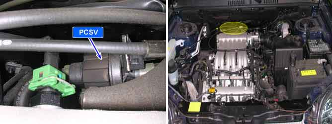 The evaporative emission control system prevents hydrocarbon (HC) vapors from the fuel tank from escaping into the atmosphere where they could form photochemical smog. Gasoline vapors are collected in the charcoal canister. The ECM controls the Purge Control Solenoid Valve (PCSV) to purge any collected vapors from the canister back to the engine for combustion. This valve is actuated by the purge control signal from the ECM and controls fuel vapor flow from the canister to the intake manifold.